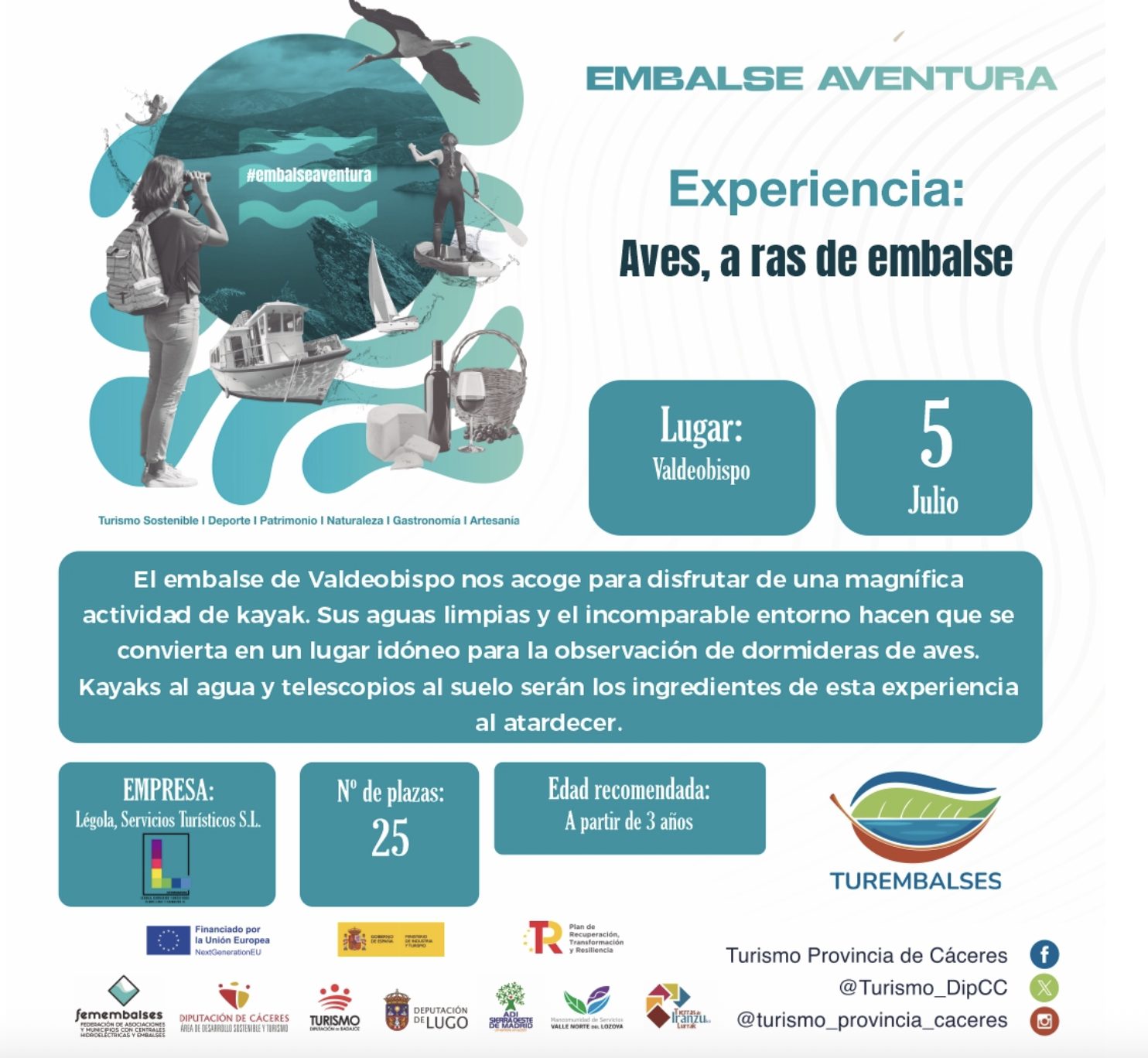 Inscripciones en VALDEOBISPO disponibles 10 días antes de cada actividad a través del siguiente enlace: https://alaguacaceres.com/aves-a-ras-de-embalse-5-de-julio-de-2025/?fbclid=IwY2xjawLPIuBleHRuA2FlbQIxMAABHjFwEsynWFtjW67bPDMGWVXMDZiVU3pypCLrTy-Qszfa6L56pIZBtj-Q9tpH_aem_a4w4JjYgUeEKifGMwtj2xQ