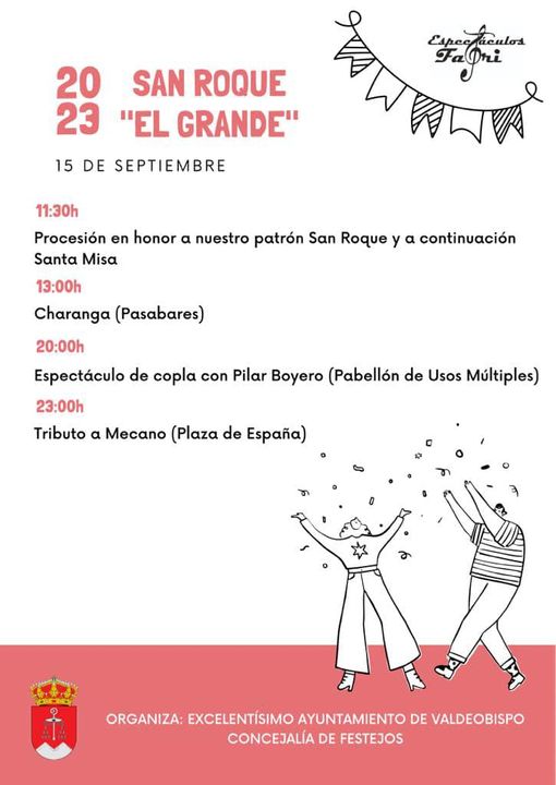 cartel de las fiestas patronales de septiembre, con motivos de San Roque “El Grande” 2023. 07 septiembre 2023 Desde la concejalía de festejos os deseamos que disfrutéis al máximo de la festividad del día 15 de septiembre. Muchas gracias. ¡Viva San Roque!