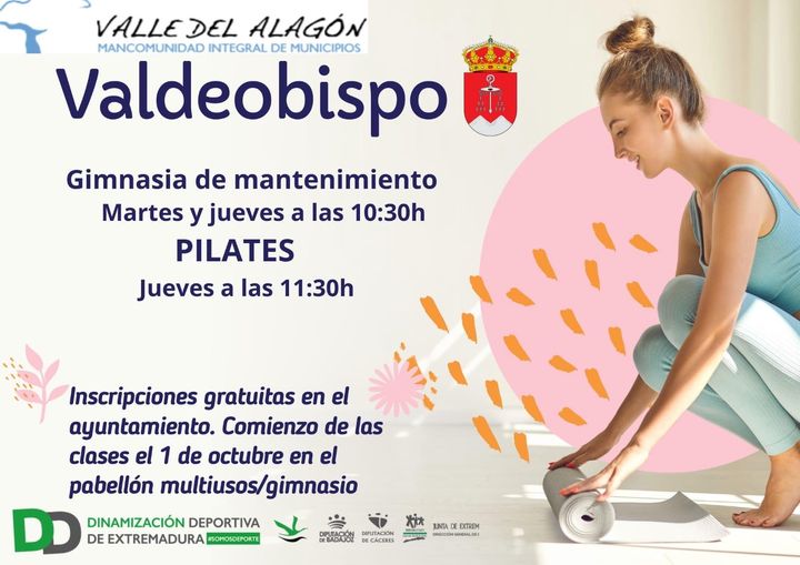Clases de gimnasia de mantenimiento y pilates. 04 octubre 2024 El día 1 de octubre comienzan nuevamente las clases de gimnasia de mantenimiento y pilates. Si estás interesado/a, no dudes en apuntarte en el Ayuntamiento.